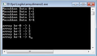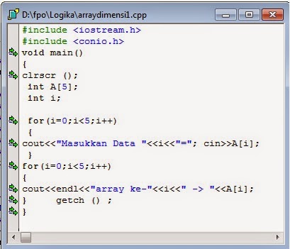- int a[5] menunjukkan bahwa terdapat array dimensi 1 dengan banyak elemen 5yang bertipe integer.
